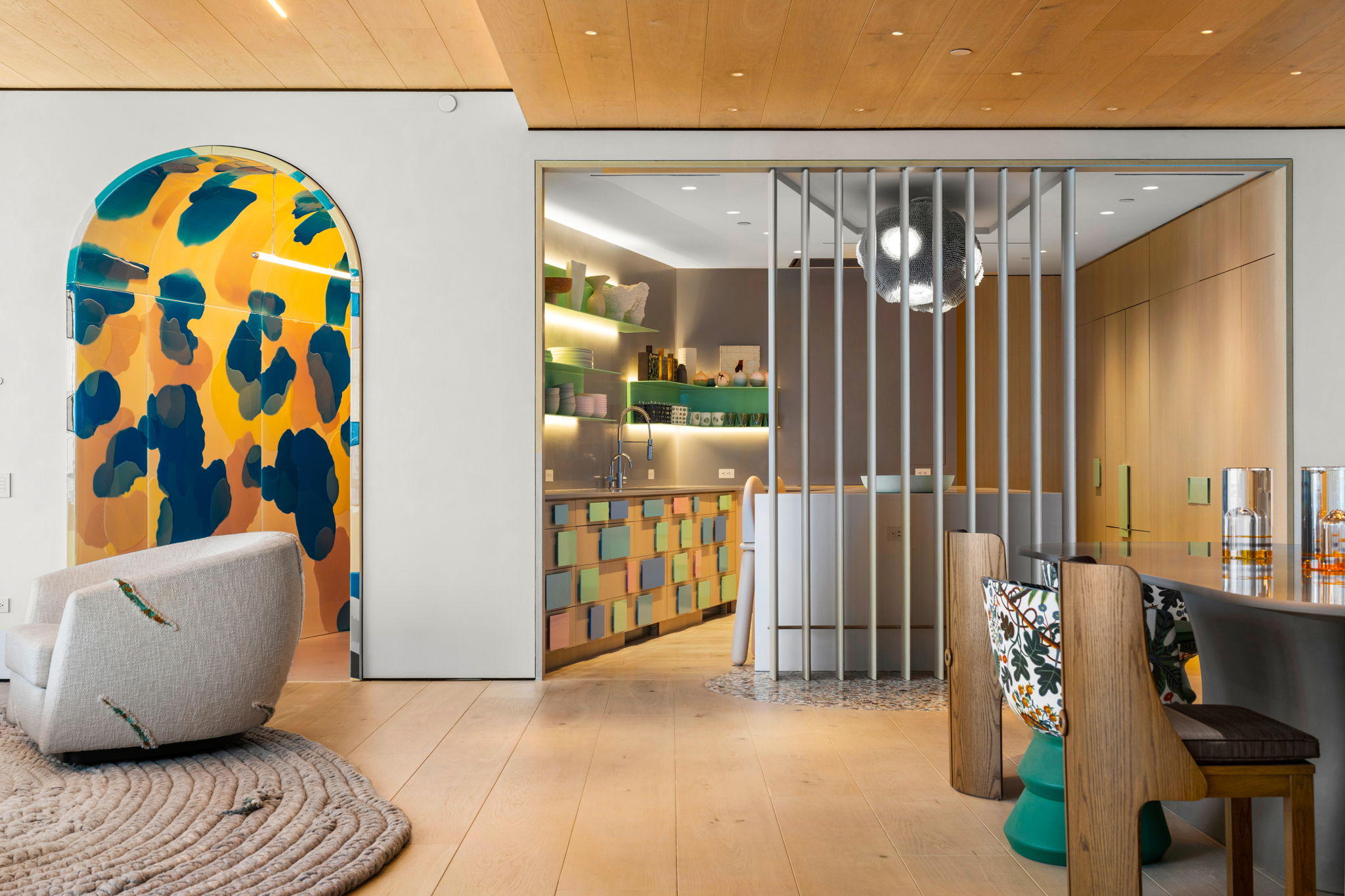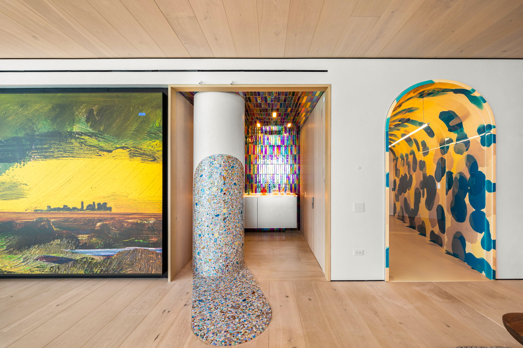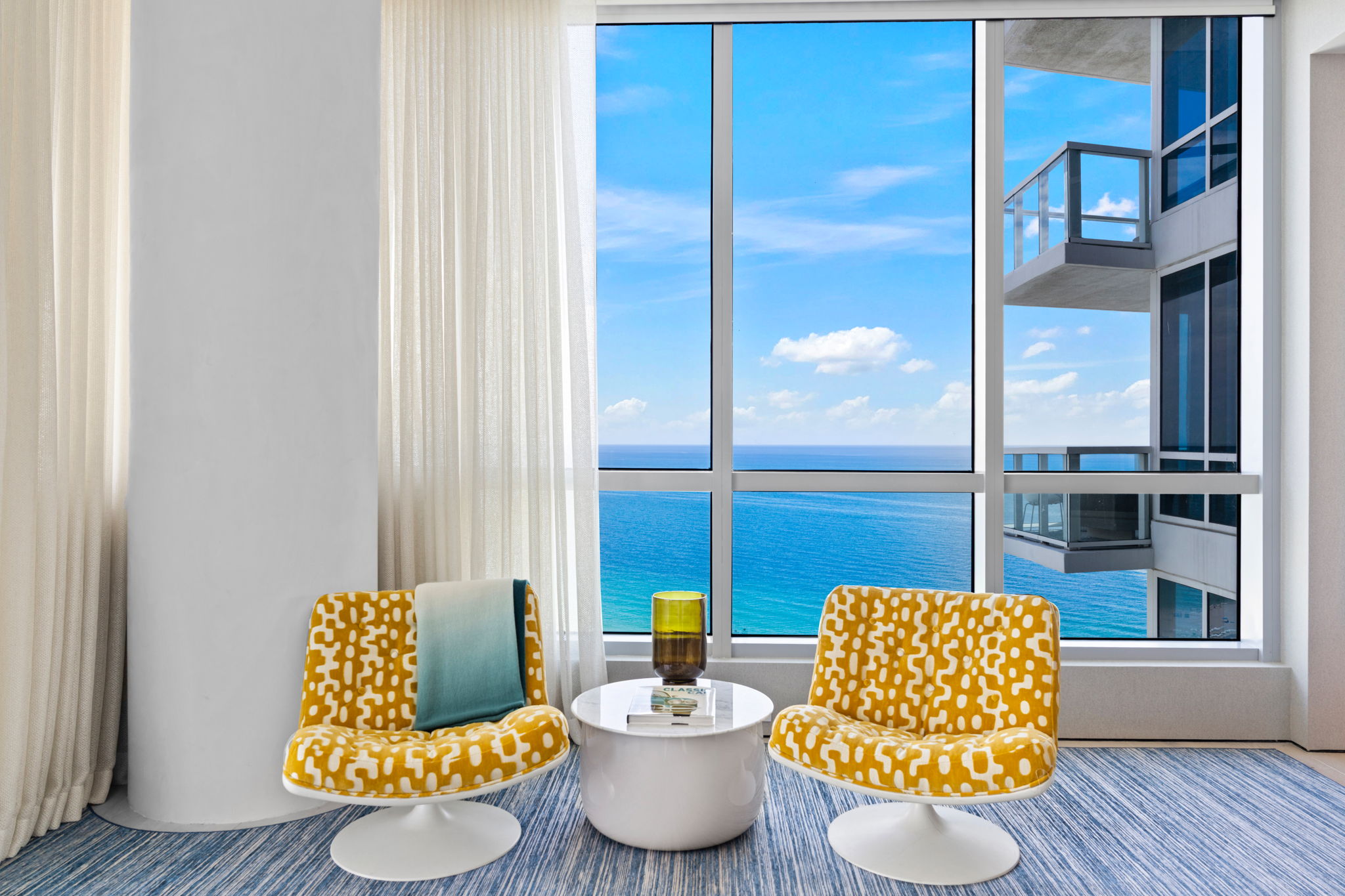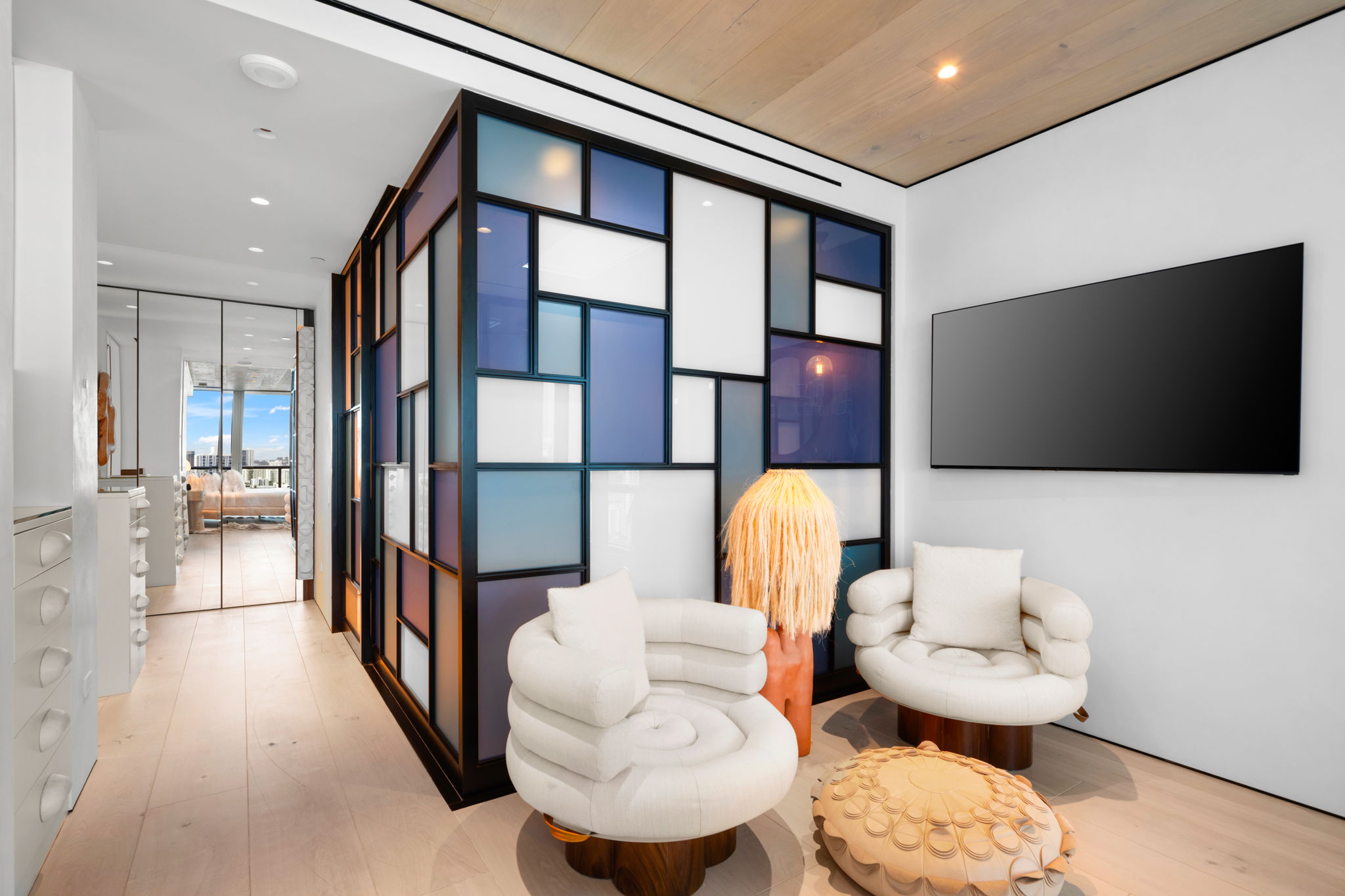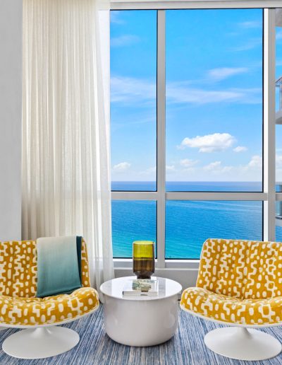 Set within the iconic Continuum South Beach, this one-of-a-kind home seamlessly combines two residences into an immersive, art-driven living experience. Bold in both vision and execution, the residence redefines luxury beachfront living with expressive design choices, unconventional materials, and museum-quality craftsmanship. A 180-degree exposure captures sweeping ocean and skyline views, while a playful polka-dot resin tunnel, stained-glass–style walls, and masterful use of light and color elevate this residence beyond conventional luxury.